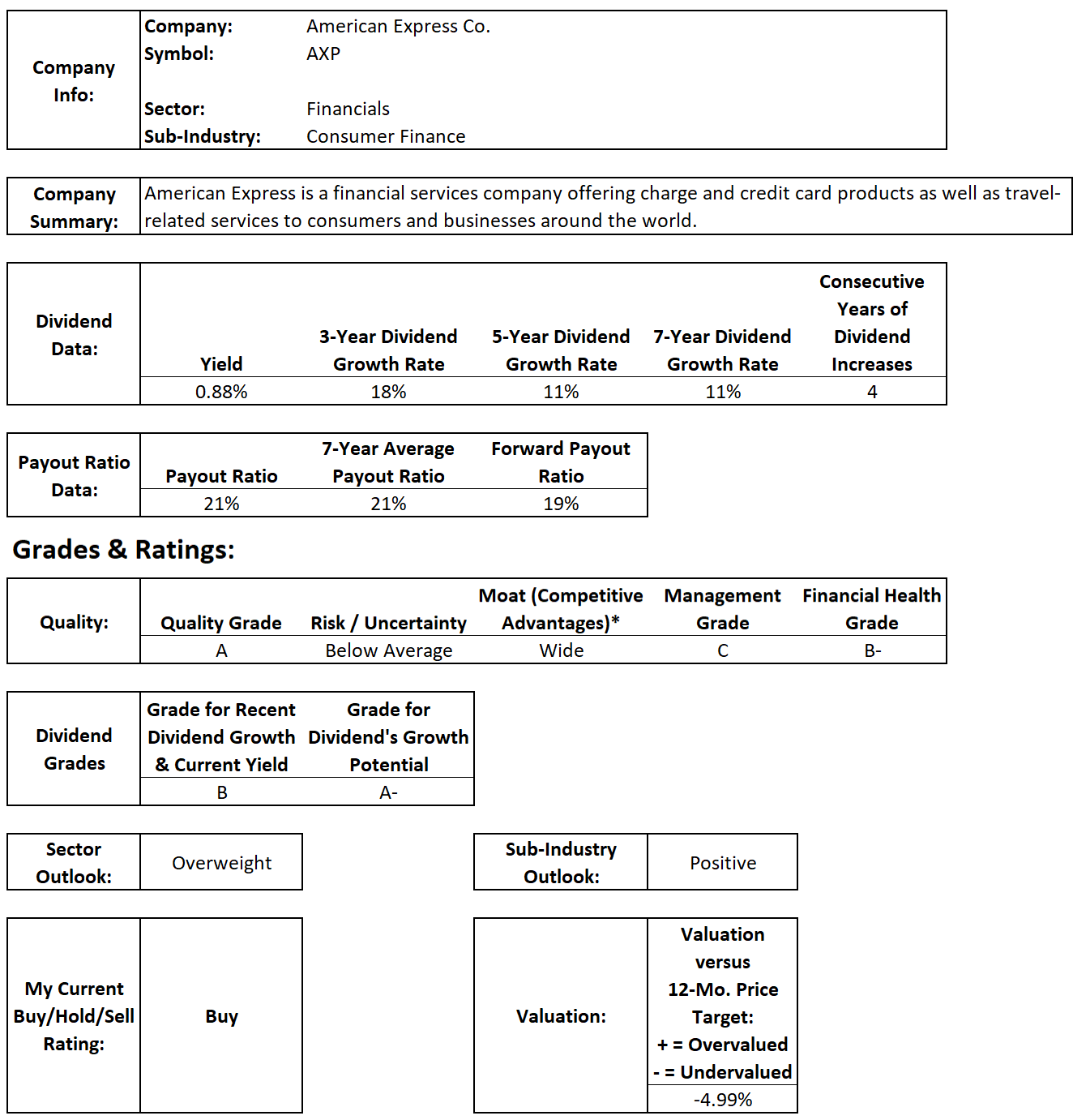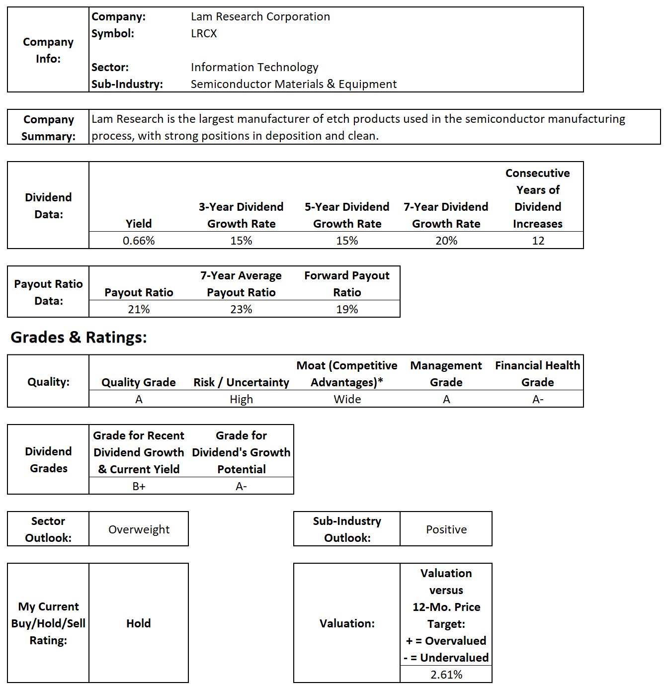 My Current Buy/Hold/Sell Rating